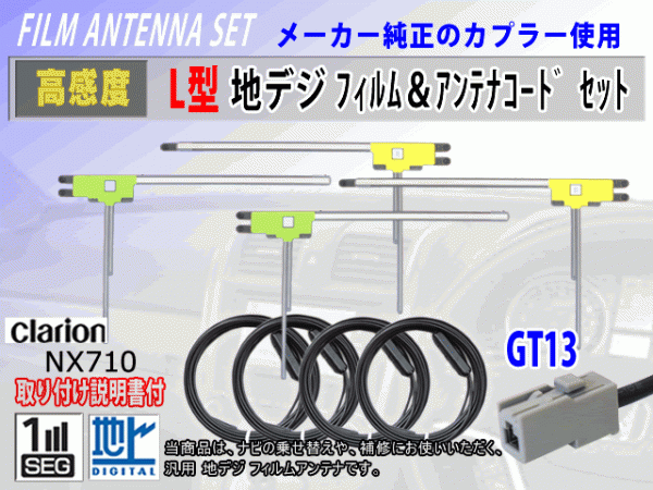 > フィルムアンテナ 4枚 コード 4本 GT13 クラリオン NX615W/NX715/NX714 高感度 高品質 フルセグ 載せ替え 補修 交換 地デジ RG7