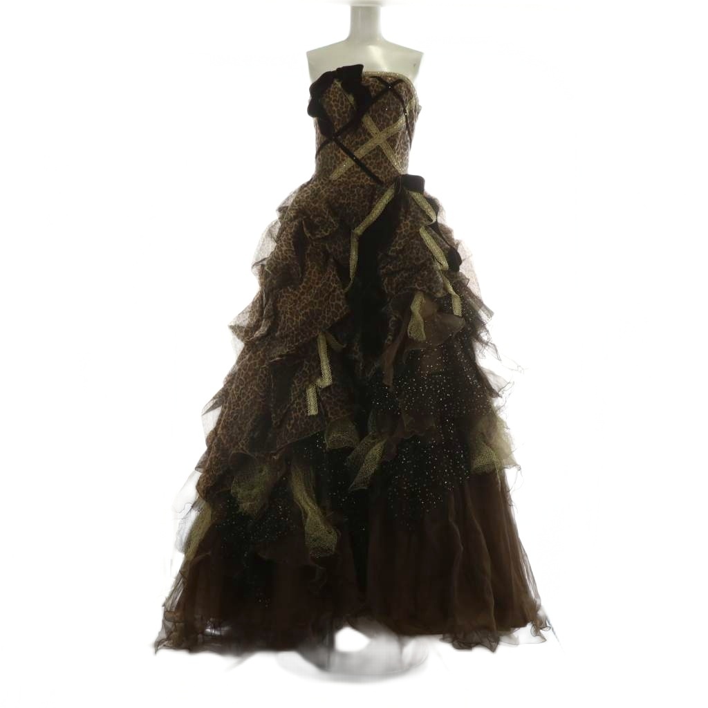 > アヤナチュール ウェディングドレス Aライン ビスチェ サテン チュール ヒョウ柄 レオパード スパンコール レース リボン 9TT M 茶色
