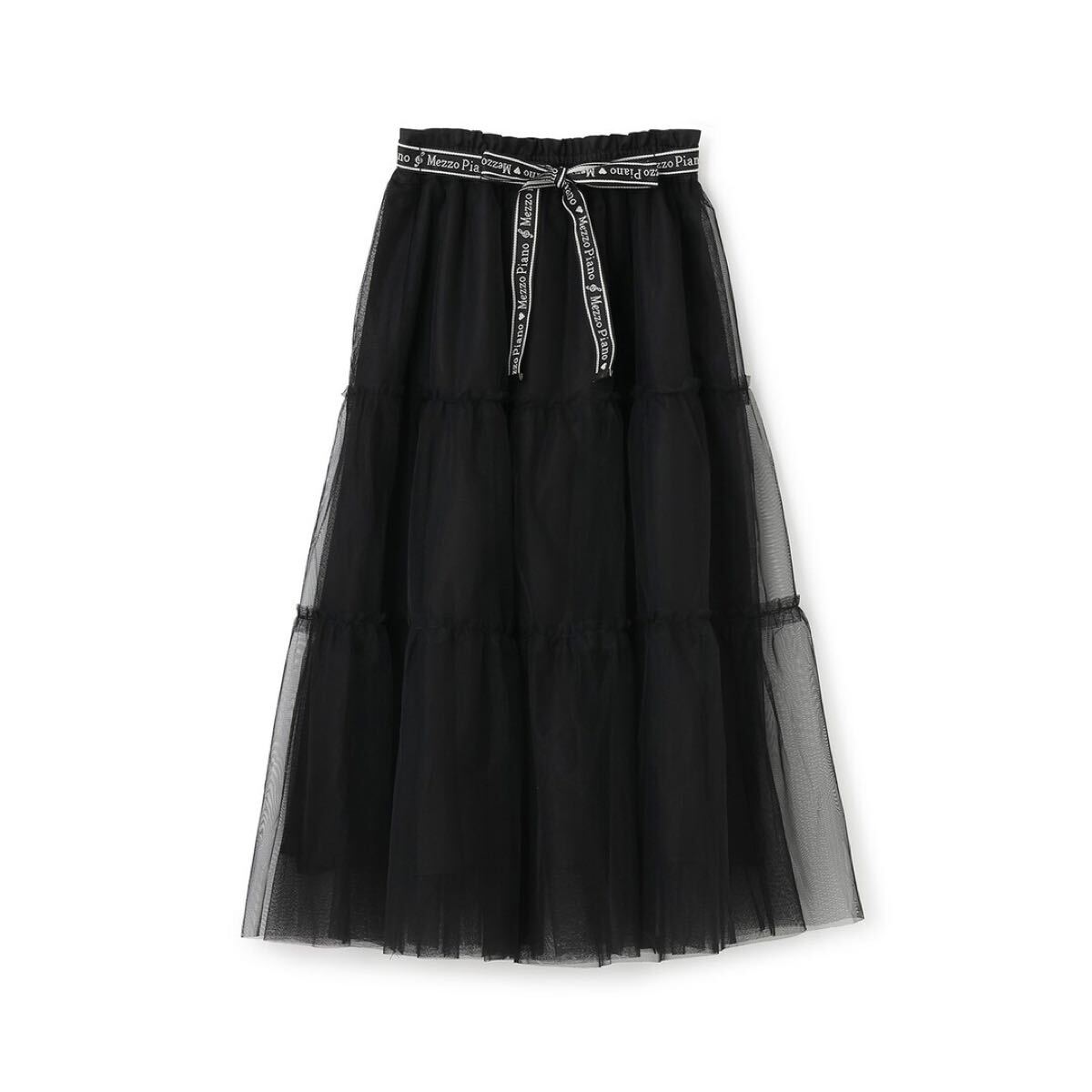 - メゾピアノ新品新作タグ付き音符柄ベルトフリルチュールスカート150