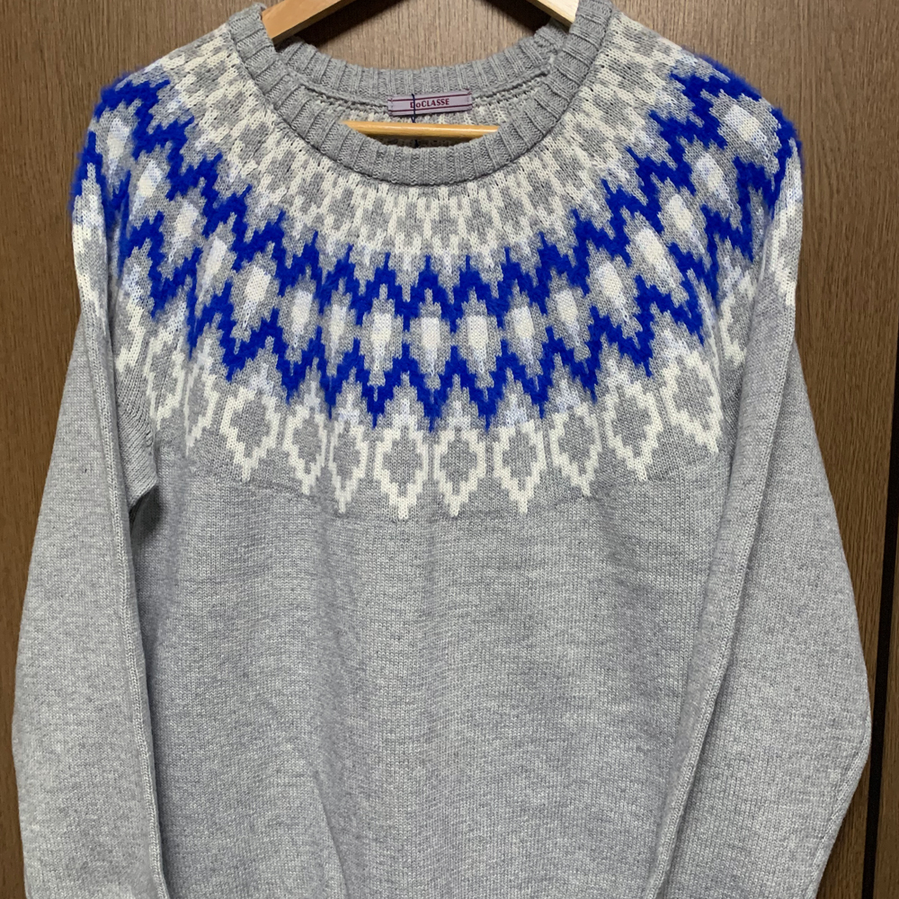- L【DoCLASSE|セーター】ドゥクラッセ グレー×ブルー ニット ノルディック 未使用