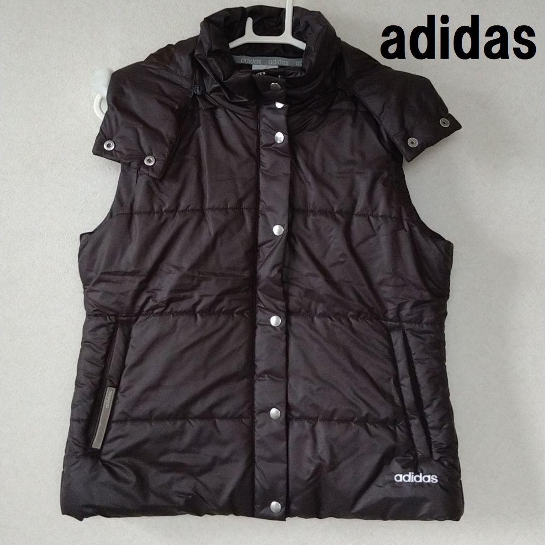 - 美品 adidas(アディダス) フード付き ダウンベスト 茶