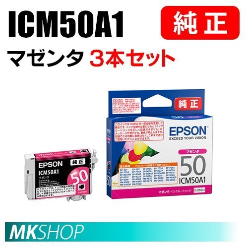 > EPSON 純正 インクカートリッジ ICM50A1 マゼンタ 3本セット(PM-A820/A840/A840S/A920/A940/D870/G4500/G850/G860/T960)