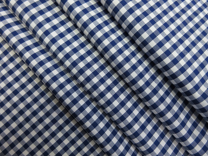 > 綿100 先染 ギンガムチェック シャツ ワンピース 薄地 巾115cm 長4m 紺系 [B973]
