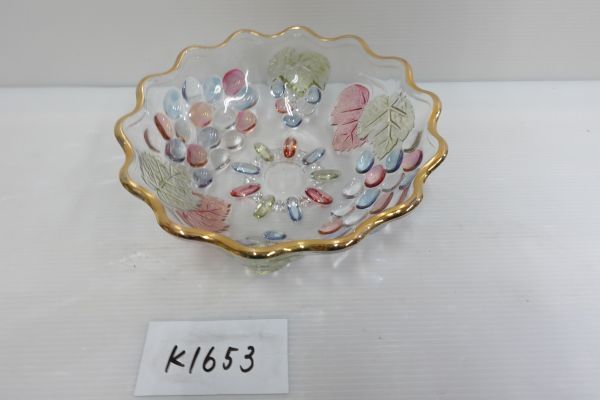 - 【k1653】Glass Ware グレープコンポート ガラス大鉢 フルーツ皿 昭和レトロ 現状渡し