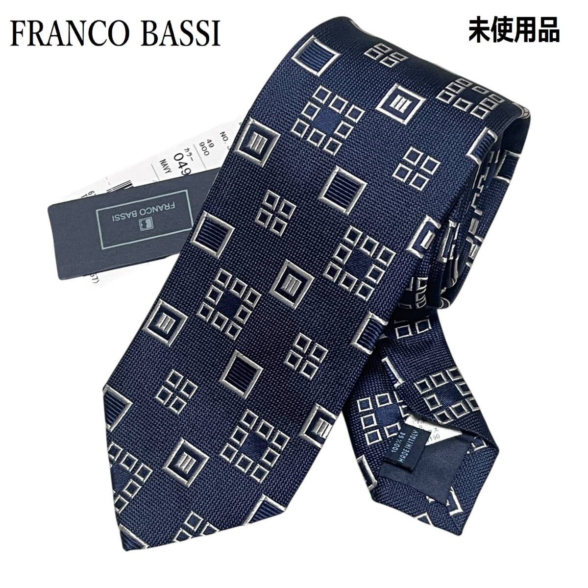 - 【新品】FRANCO BASSI フランコバッシ ネクタイ 紺 ネイビー シルバー 小紋柄 ドレス ビジネス