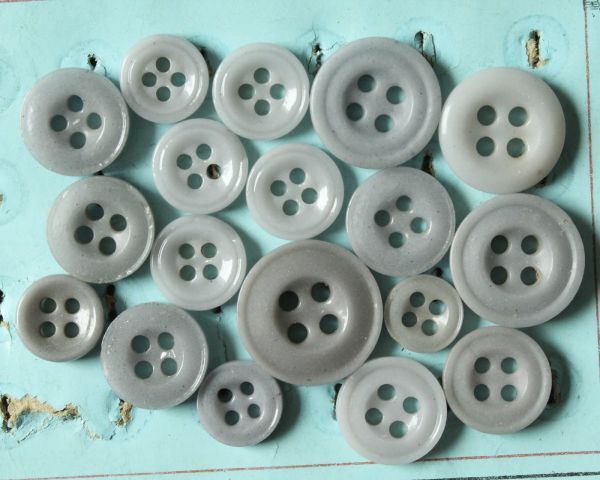 - 即決 グレー系 ガラスボタン 18個 φ9~17mm 4穴 フランス輸入 パーツ 素材 材料 ヴィンテージ