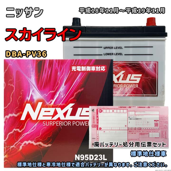 > バッテリー NEXUS N95D23L 廃バッテリー回収サービス付 ニッサン スカイライン DBA-PV36 平成18年11月~平成19年11月 対応 D23L 互換 503