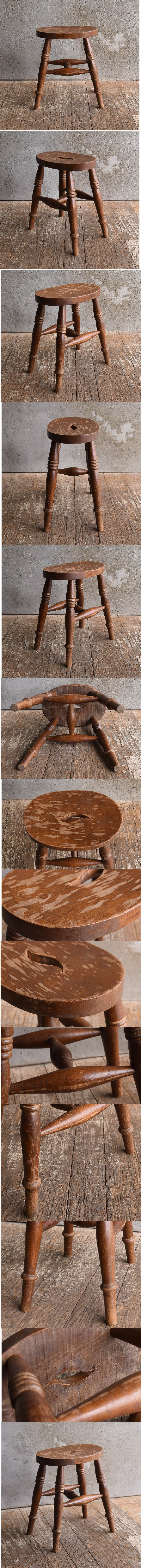 - イギリス アンティーク家具 木製スツール 椅子 13279