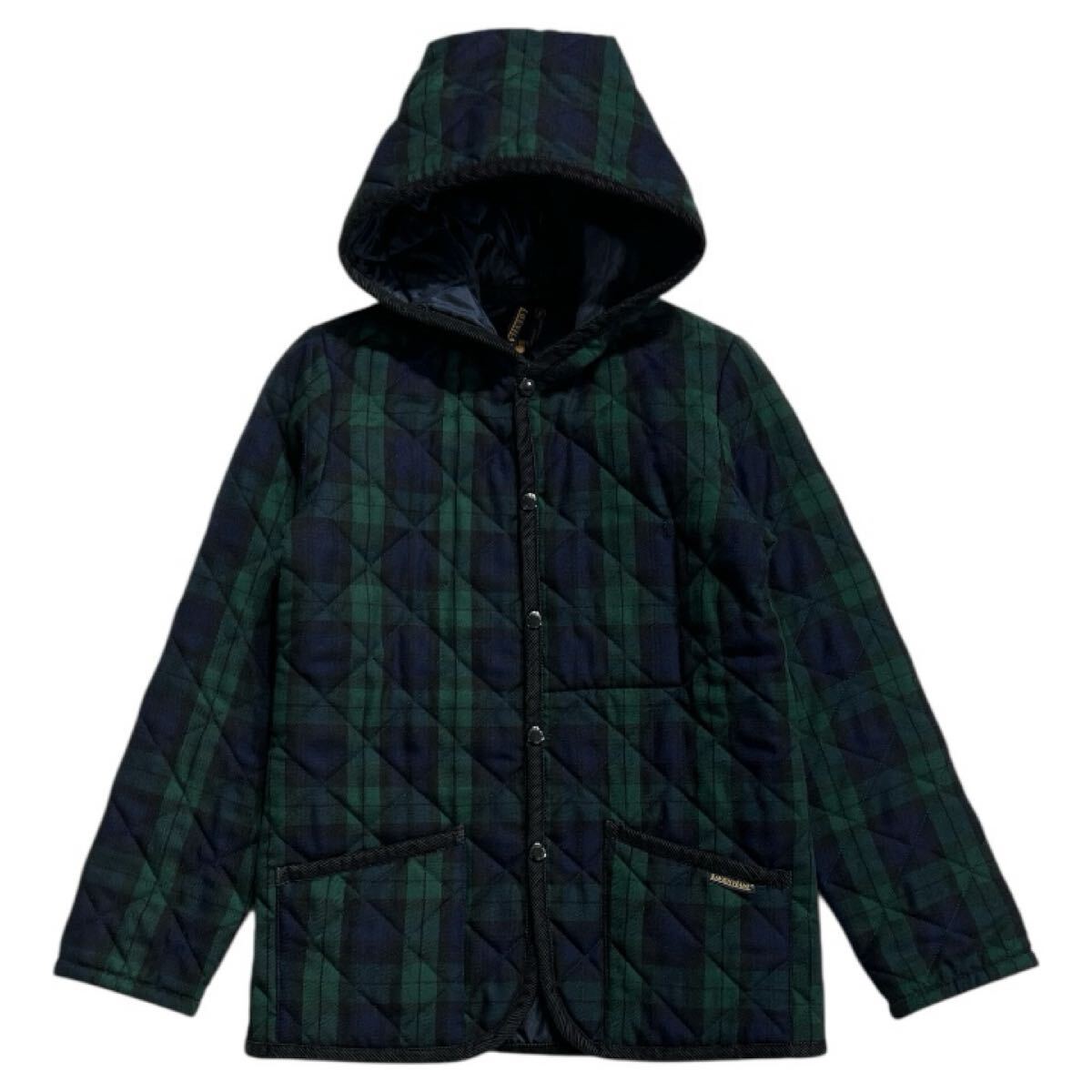 > イングランド製 ■ LAVENHAM ラベンハム ■ ロゴ ラベル チェック柄 レーヨン混 中綿入 フーディー キルティング ハーフ コート 34