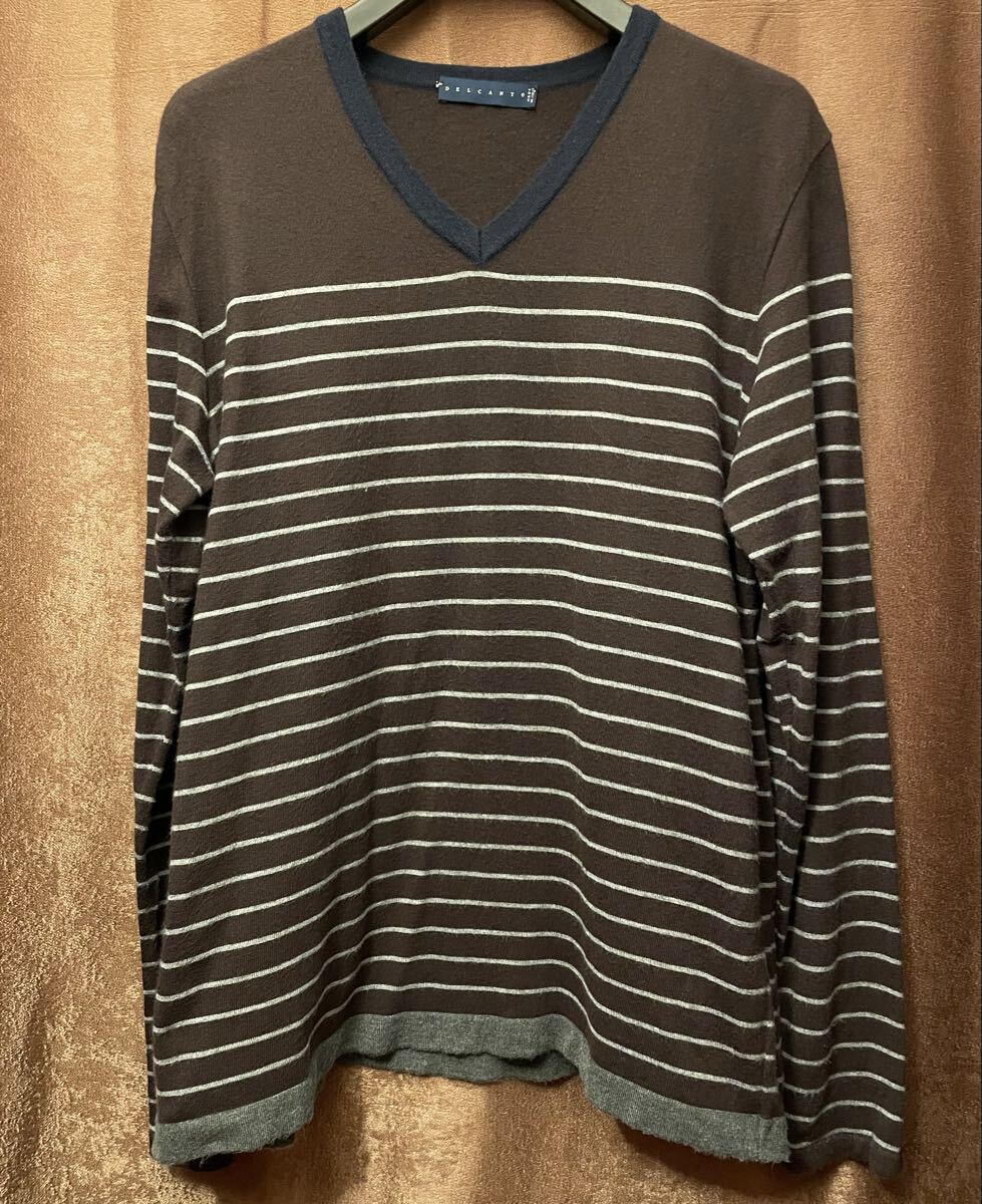 > MADE IN ITALY製 DELCANTO ボーダー柄 Vネックセーター ブラウン 50サイズ デルカント イタリア製 セーター ニット 茶色