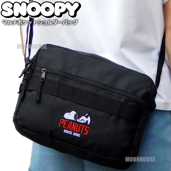 > 送料無料 スヌーピー ショルダーバッグ マルチポケット レディース メンズ 斜め掛けバッグ 斜めがけバッグ ボディバッグ SNOOPY 新品 黒■