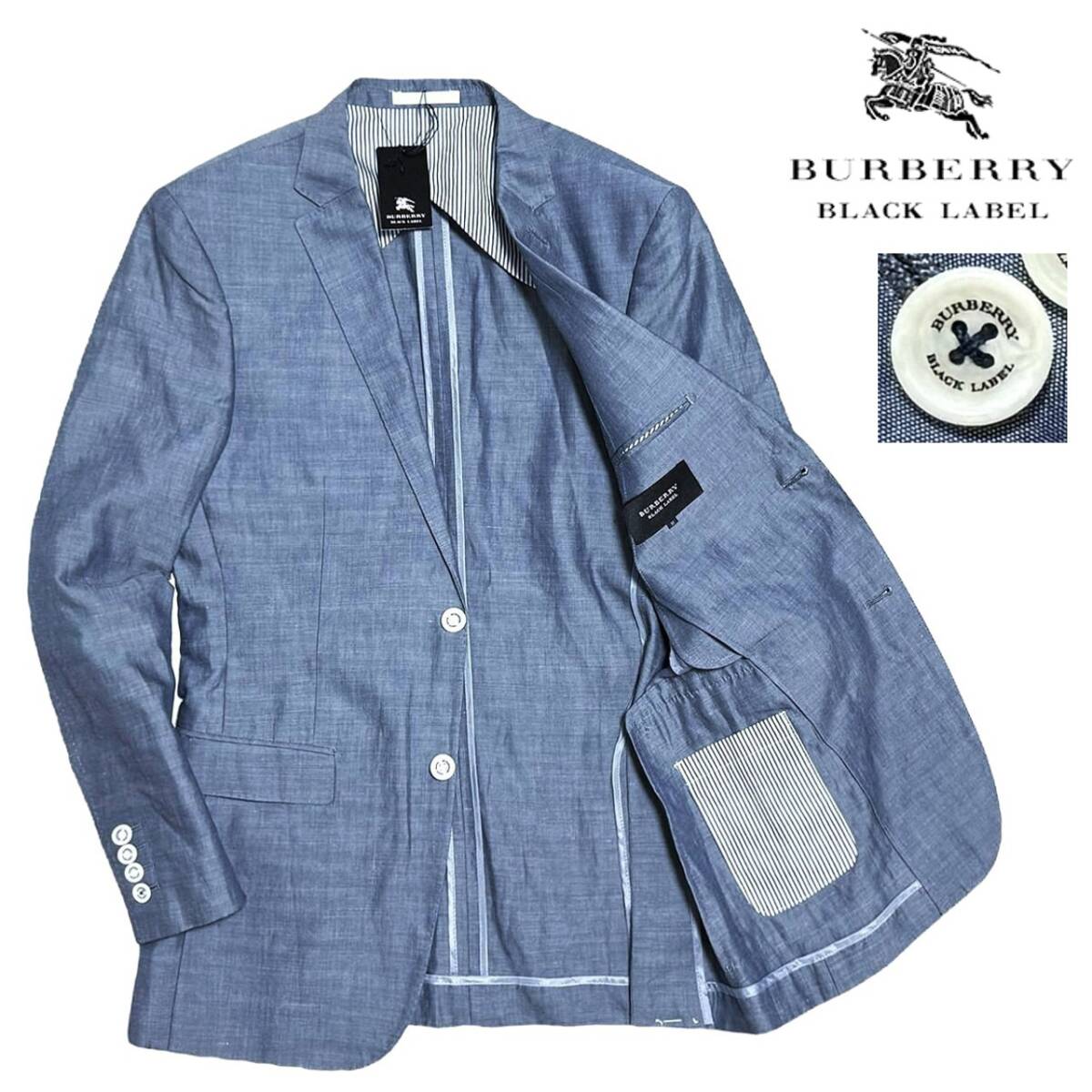- 希少! 新品 春夏用 バーバリーブラックレーベル 襟裏ストライプ 高級リネン 麻混 サマーテーラードジャケット M/2 青 BURBERRY BLACK LABEL