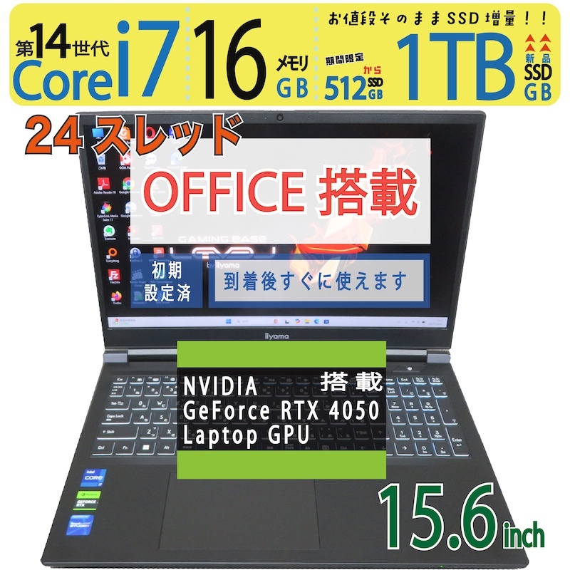 - 【ゲーミングPC】◆iiyama ILeNEi-15FX156 / 15.6型 ◆ i7-14650HX [超速24スレ] /新SSD 1TB / 16GB ◆ RTX 4050 搭載 ◆ win11 / Office