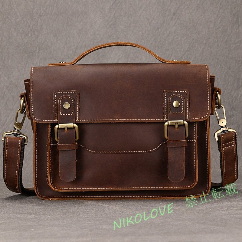 - ☆新品人気推薦 メンズレザーショルダーバッグ 多機能 本革 メンズ 鞄ハンドバッグ ハンドバッグ ヌメ革 ビジネスバッグ ブラウン