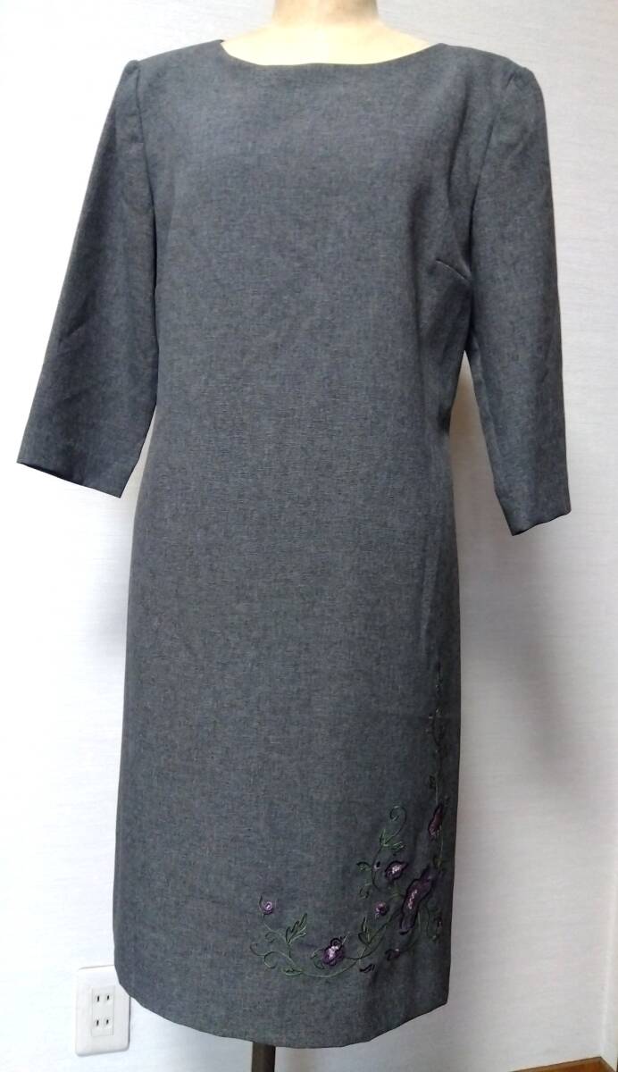 - ◆TALBOTS グレー 紫お花刺繍のワンピース◆タルボット サイズ6