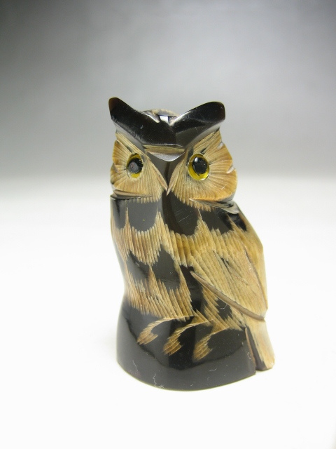 - ◎●ふくろう 置物 水牛の角(つの)製 フクロウ NO.22-1