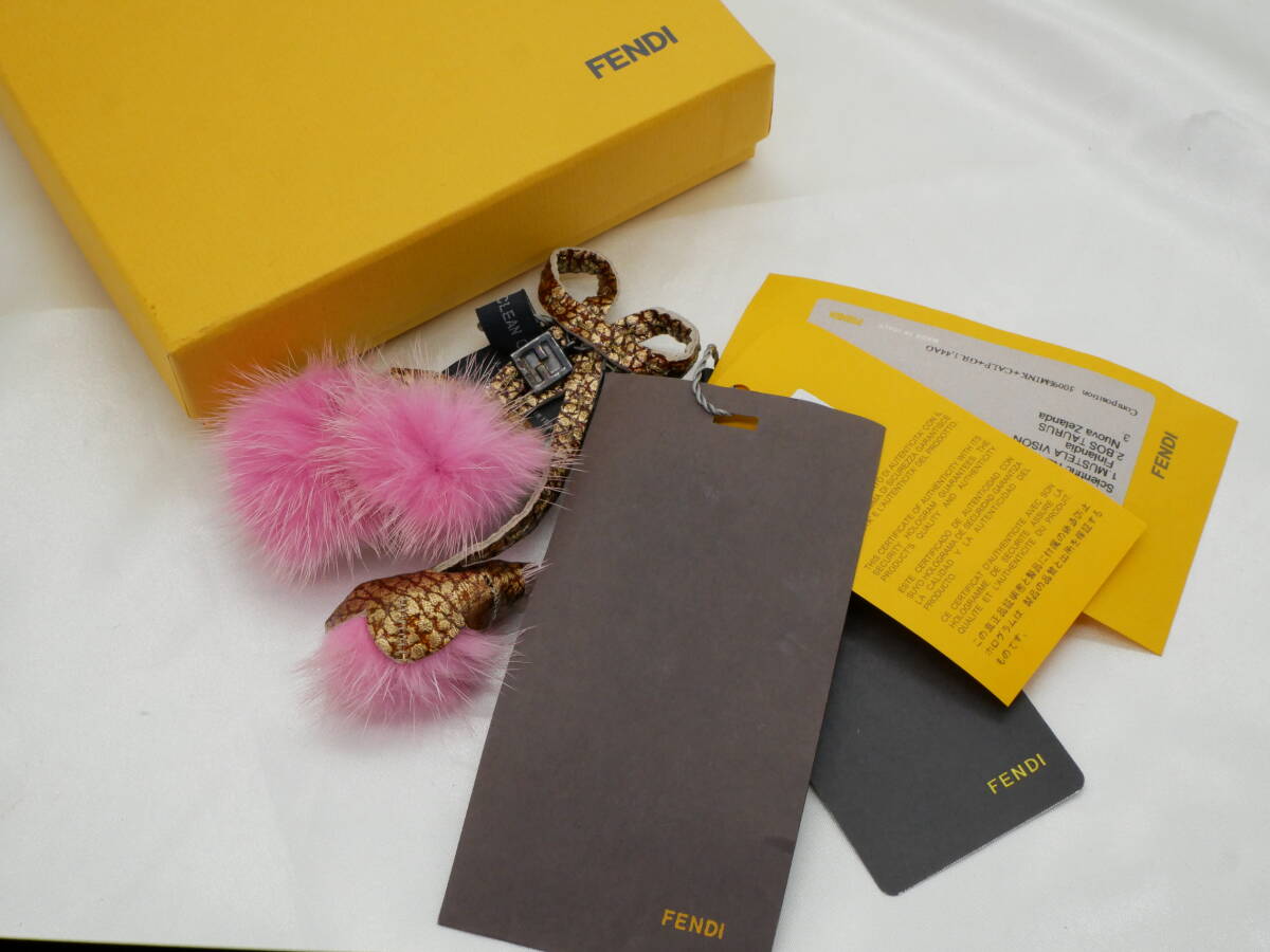 - FENDI ピンバッジ ピン ブローチ ミンクファー フラワー 牛革 リボン モチーフ ピンク