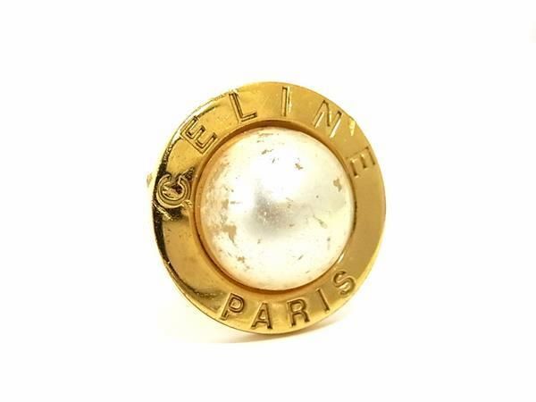 > CELINE セリーヌ サークル金具 パール 片耳のみ クリップ式 イヤリング アクセサリー ゴールド系 DF6282