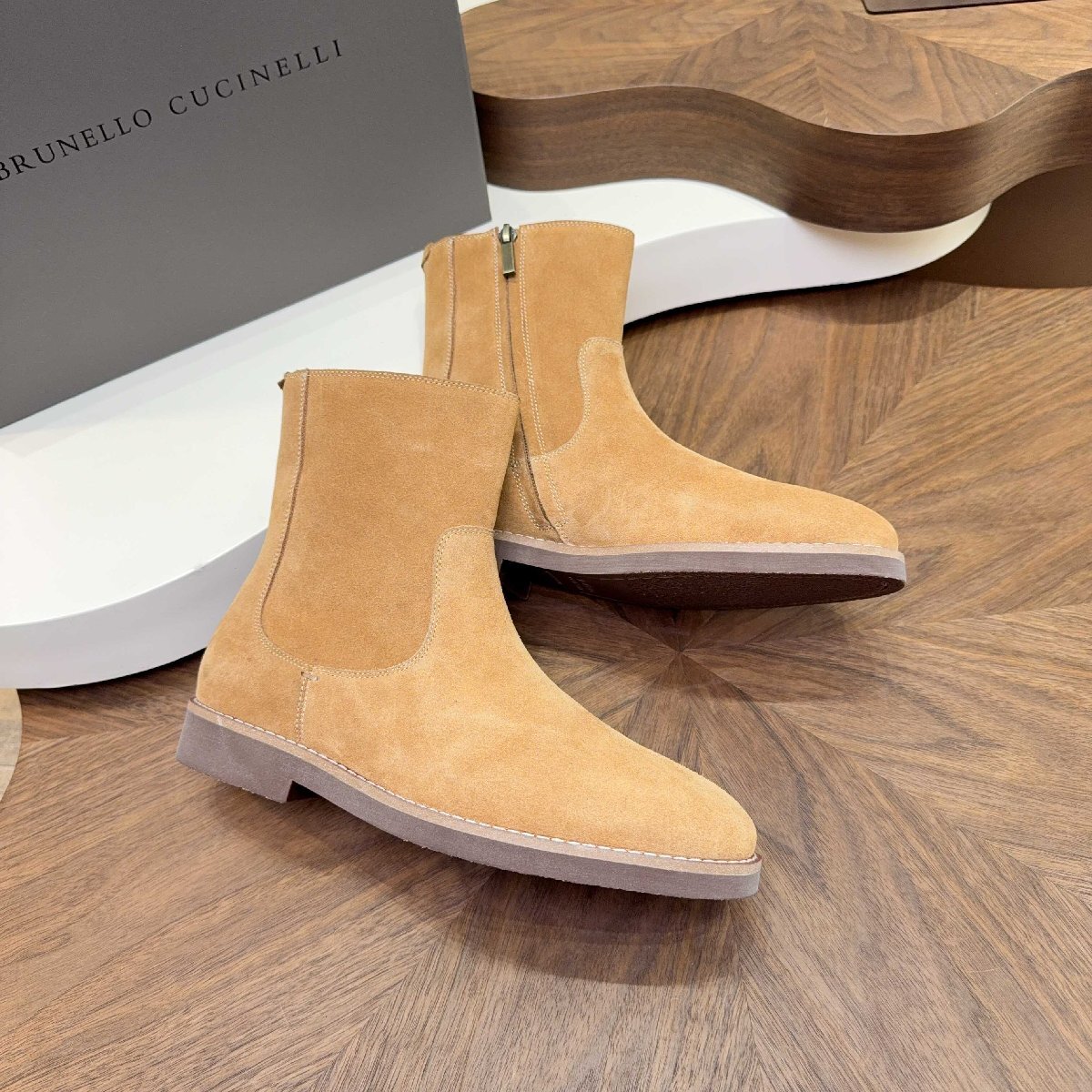 - ブラウン25.5cm★送料無料★ブルネロクチネリ★メンズチェルシーブーツ, スエード, サイドジップ, ラバーソール, ビジネスカジュアル