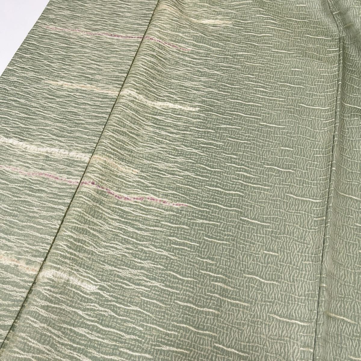 - 小紋 裄68.5 地紋お越し 上品な加工 着物 正絹 W-5369