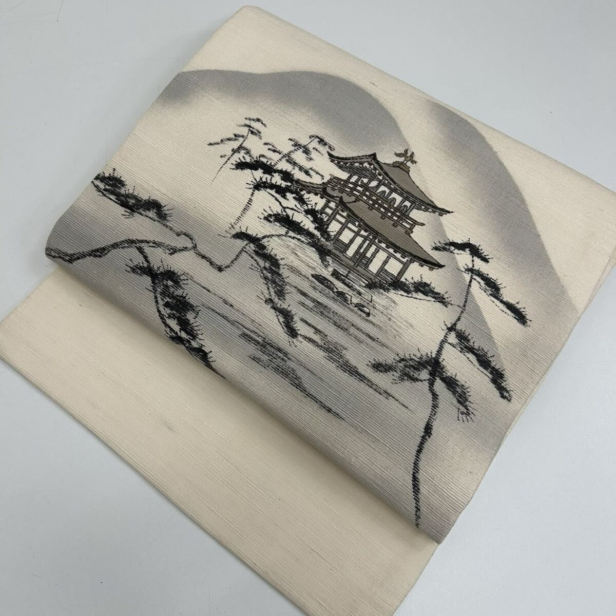 > 名古屋帯 墨書きの染め 紬 九寸 着物 正絹 W-5405