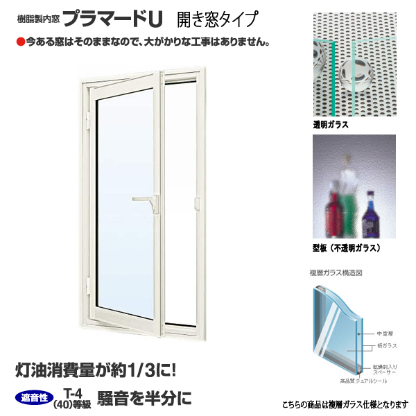 - YKK 内窓 内開き プラマードU W270~500×H434~800 までのオーダー価格 複層