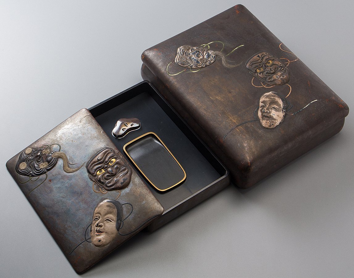 “商品説明の『続きを見る』もしくは携帯端末アプリの『もっと見る』から追加画像をご覧ください” 商品説明 品名 乾漆 能面散 文箱 硯箱 硯 水滴付 箱付 寸法 文箱・・・縦27.5cm 横21cm 高8cm 硯箱・・・縦22.4cm 横15cm 高4.5cm ※寸法に若干の誤差が生じます。ご承知下さい。 状態 幾つか小漆ハゲ、角1ヶ所ヒビ。 略歴 備考 補足 送料 ■ゆうパック100サイズ(詳細は以下の〈配送方法〉を参照して下さい) ※形状・性質が異なるものは同梱をお断りさせていただく場合がございます。同梱の場合、サイズ変更により表示される送料の金額を修正させていただく場合がございます。予めご了承いただきますようお願い致します。 ※2023年10月より日本郵便の郵便価格改定により、配送料を改訂させていただきます。何卒ご理解の程よろしくお願い致します。