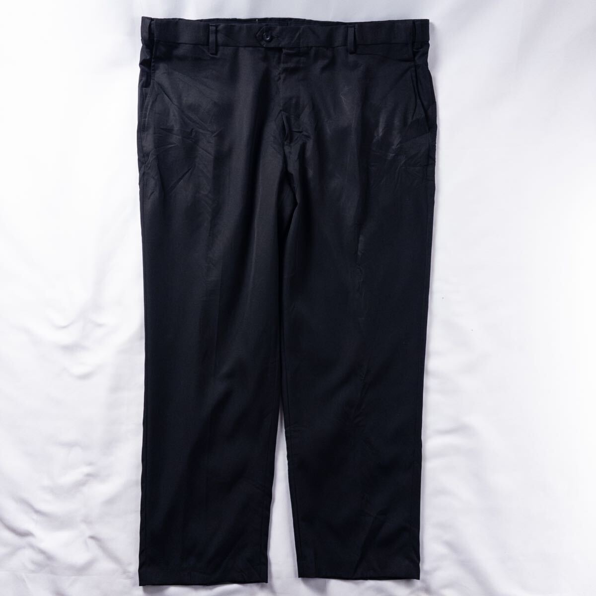 - US Vintage 00s JOS.A.BANK ポリ ツイル ノータック 光沢 ドレープ クラシック トラッド ブラック ワイド ドレス スラックス トラウザーズ