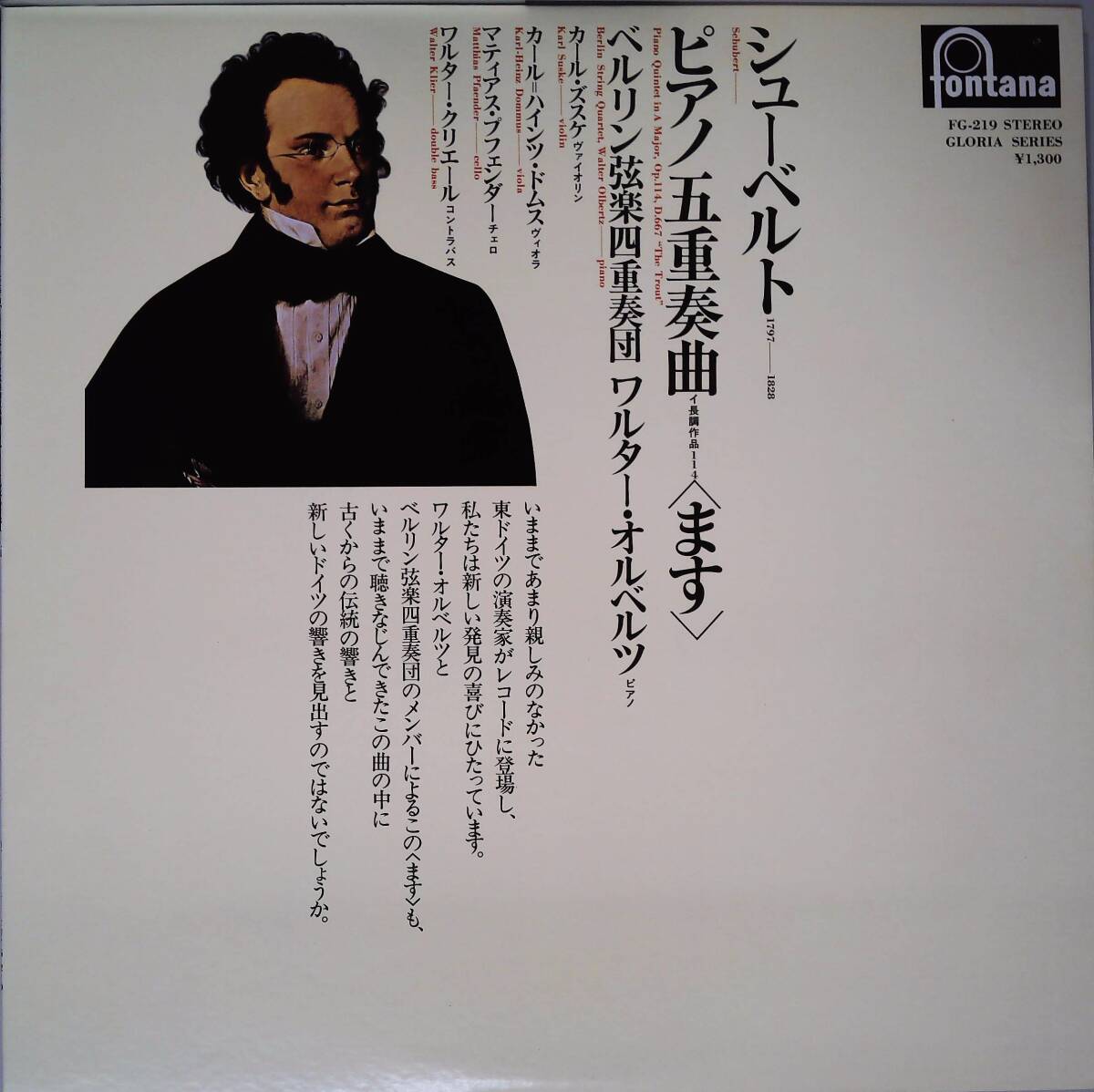 A00509038/LP/ワルター・オルベルツ「シューベルト:ピアノ五重奏曲 イ長調、作品114」