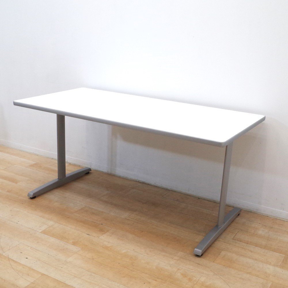 > オカムラ okamura 8177シリーズ ミーティングテーブル 8177EB MG29 幅150㎝ ホワイト 会議 荷物 作業机 シンプル KK17409 中古オフィス家具