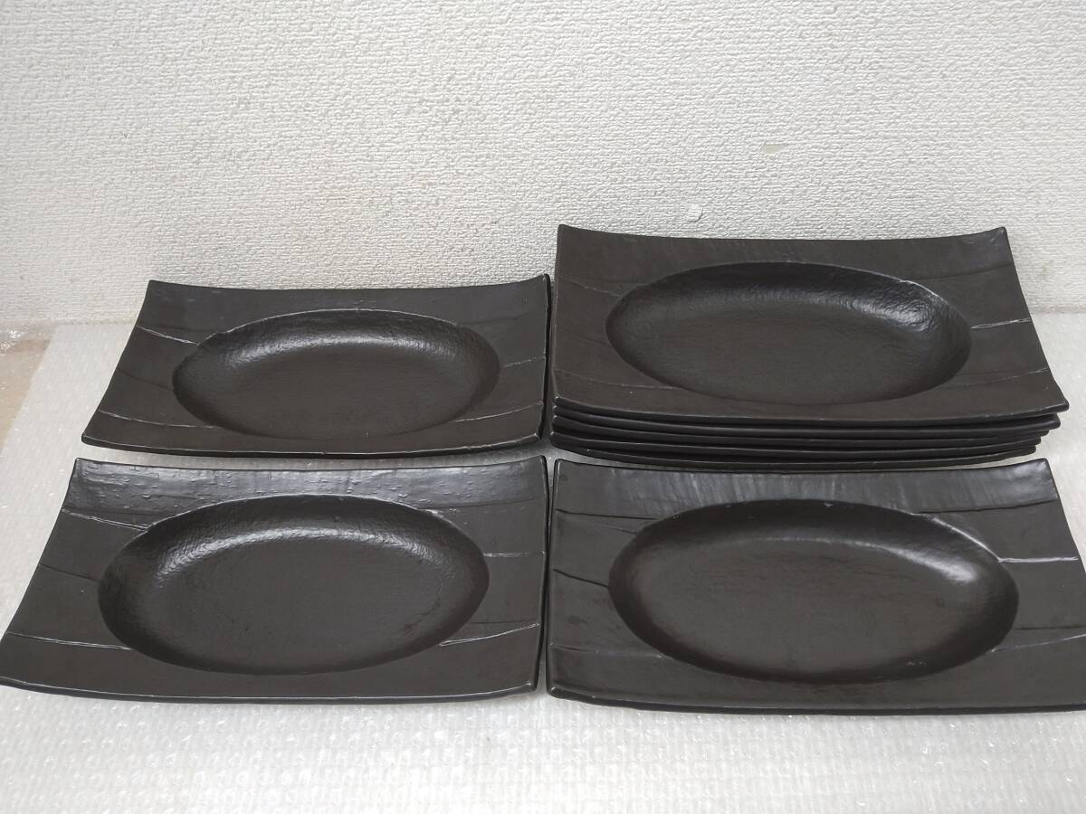 > ♪♪5j041-1/5 麦山 和食器 スクエアプレート 濃灰色 8枚 セット 陶器磁器 平皿長皿 和食 居酒屋 店舗♪♪