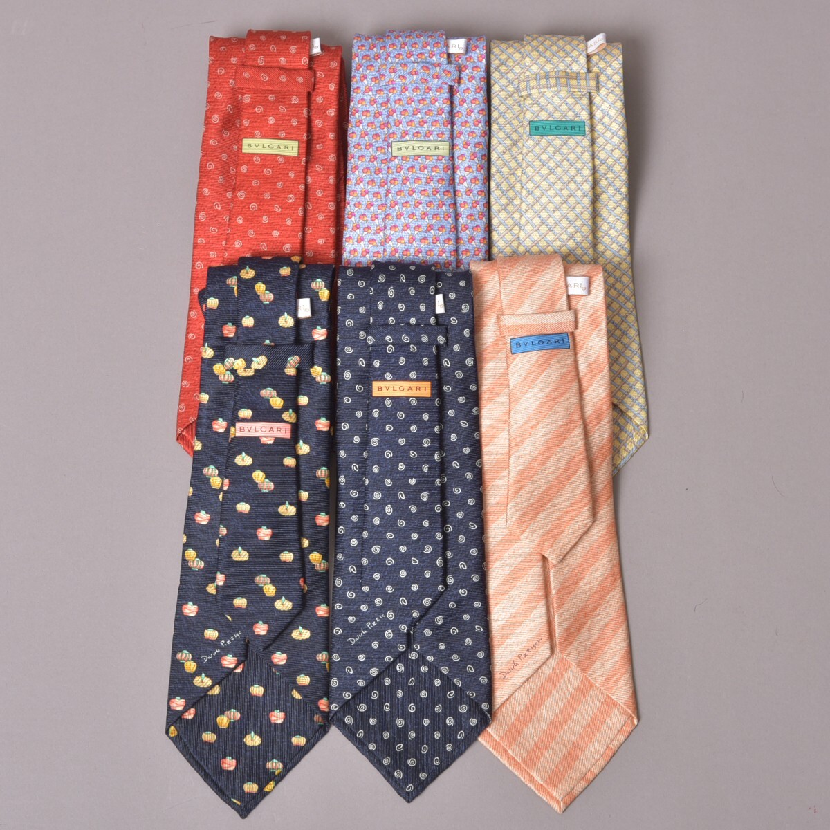 - 新品有 BVLGARI ブルガリ ネクタイ 6本セット 総柄 シルク 厚手 青 赤 黄色 水色 フォーマル スーツ 制服 まとめ #60※1002-12/k.c