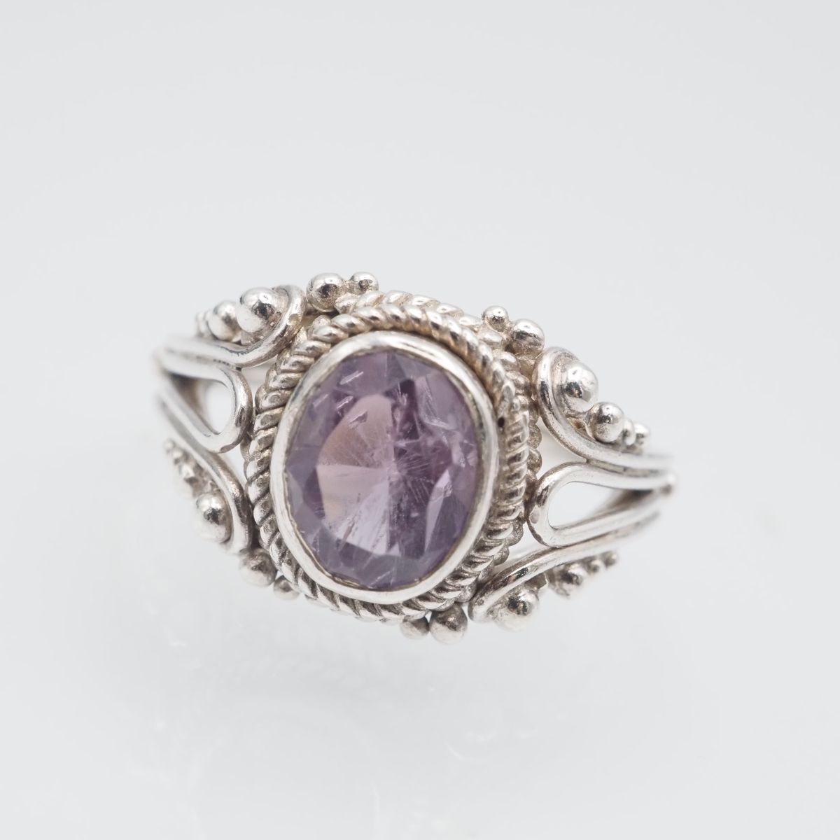 - H233 アメジスト リング デザイン シルバー 指輪 ヴィンテージ 2月誕生石 9号