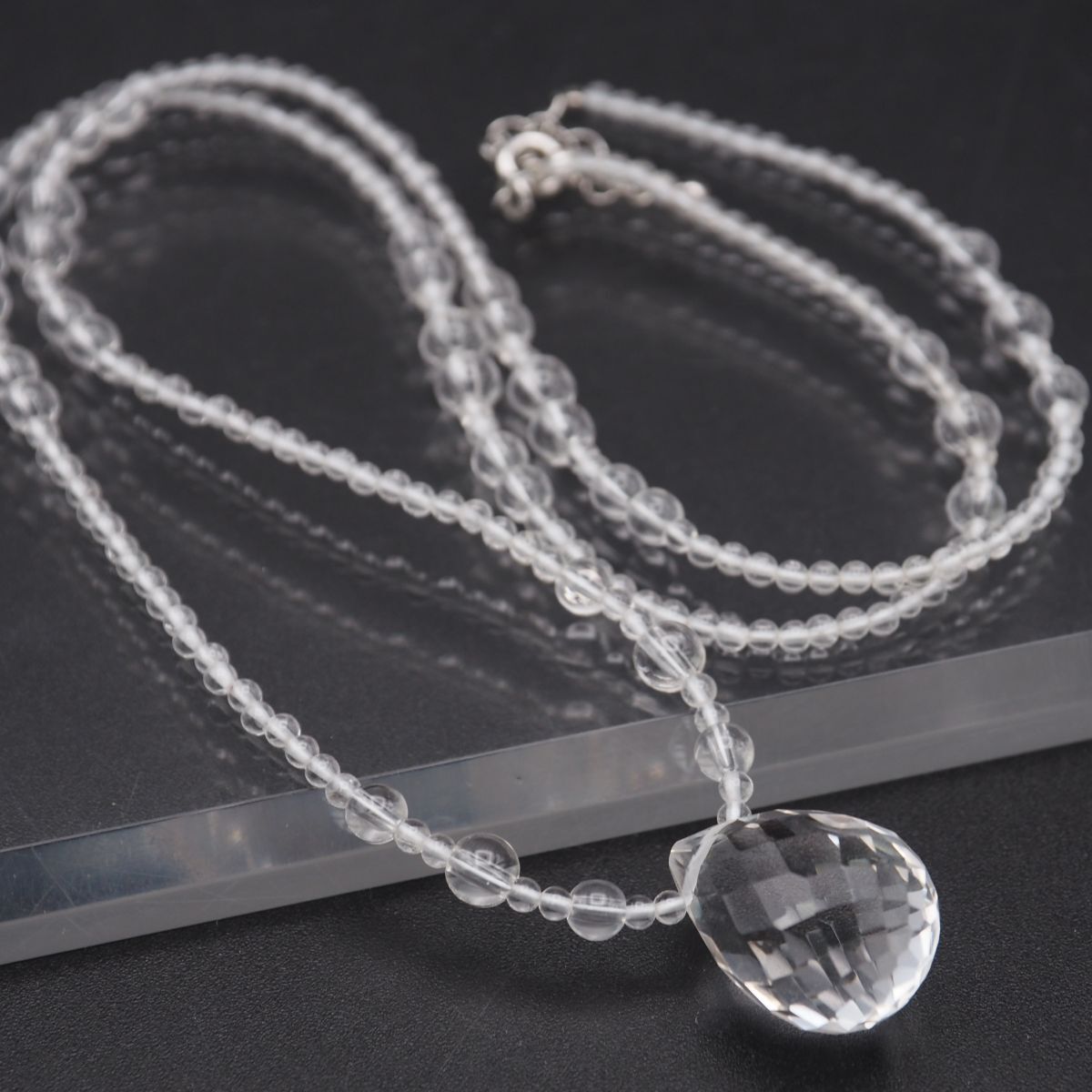 - G789 水晶 STERLING刻印 ネックレス デザインカット シルバー