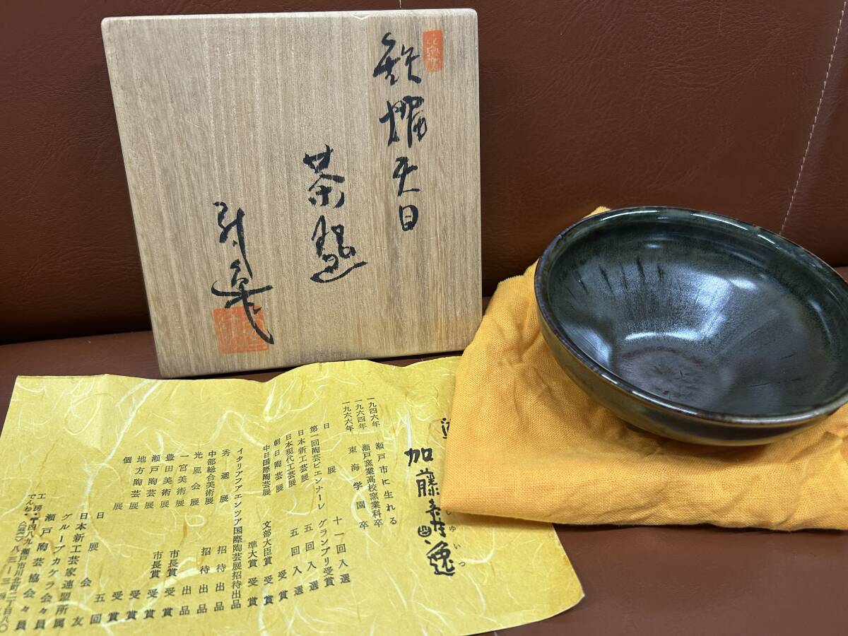 - 道泉窯 加藤寿逸 天目茶碗 共箱 在銘