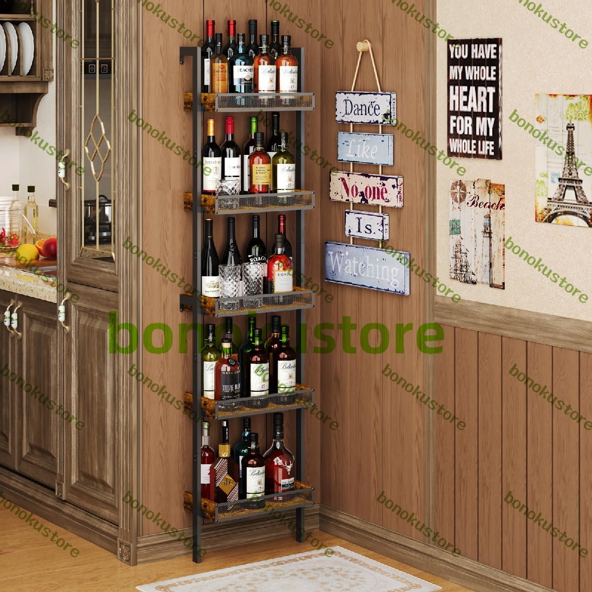 - 5段自立式ワインラック 50本ワインラックシェルフ壁取り付けフェンス ワインボトルホルダーディ 木製 17.28×7.95×68.5インチ