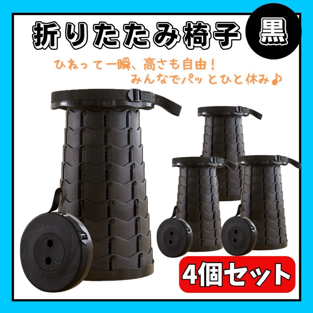- 折りたたみ椅子 カラー黒4個セット キャンプ BBQ 釣り アウトドア 軽量 黒