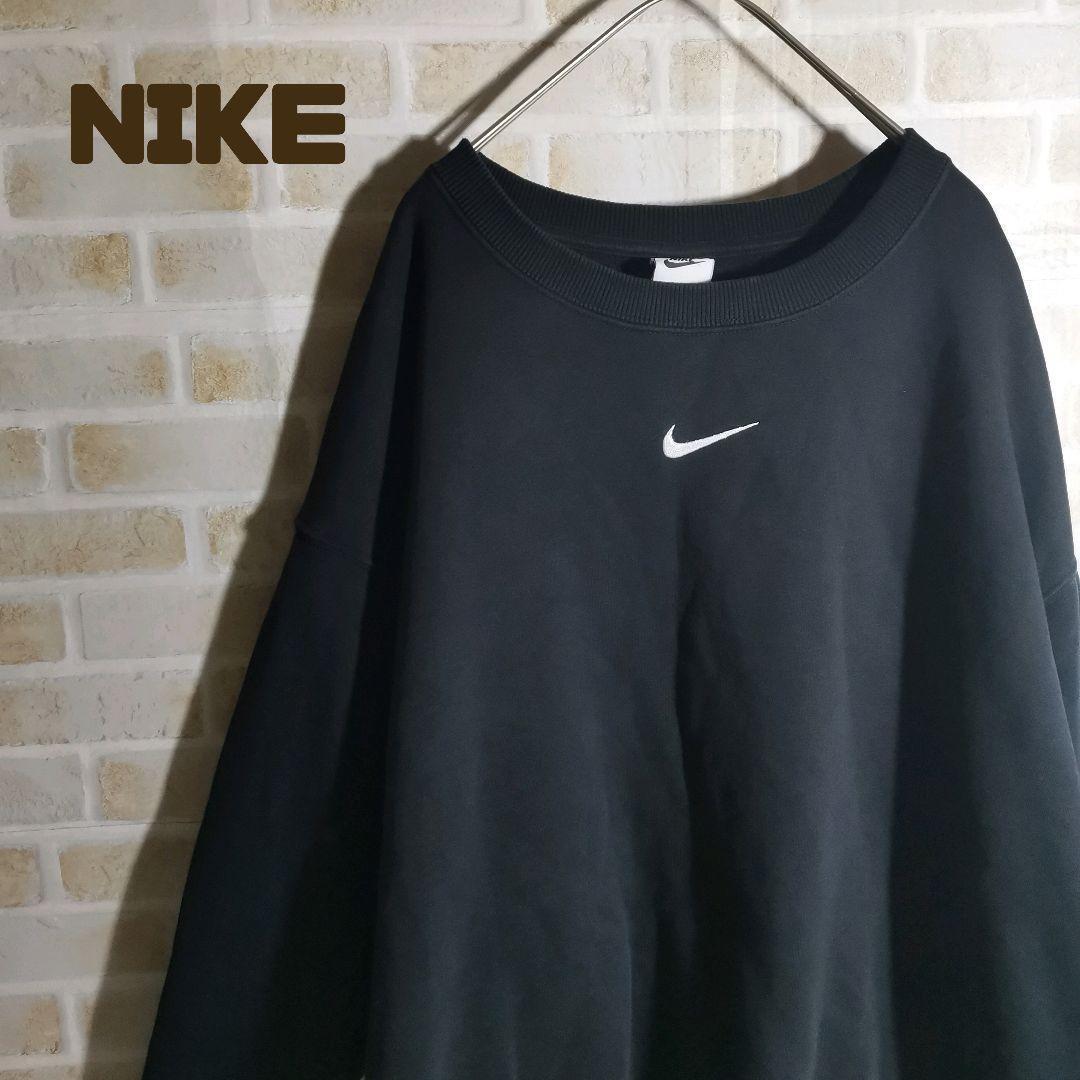 - NIKE ナイキ スウェット トレーナー 黒 センター 刺繍 ロゴ