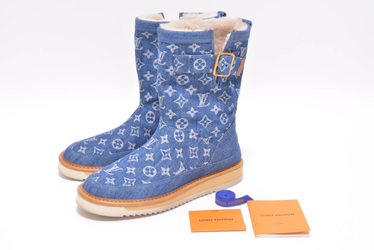 > 極美品 ルイヴィトン LV コージー・ライン ブーツ モノグラム デニム ムートン NIGOコラボ第2弾