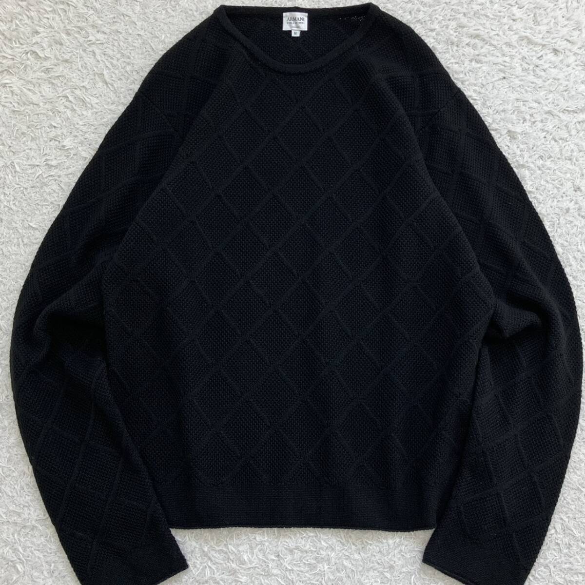 - 超希少50(XL)!極美品!アルマーニコレッツィオーニ ARMANI COLLEZIONI ニット セーター 長袖 3D 凹凸 伸縮 メンズ ビジネス ブラック 黒 LL