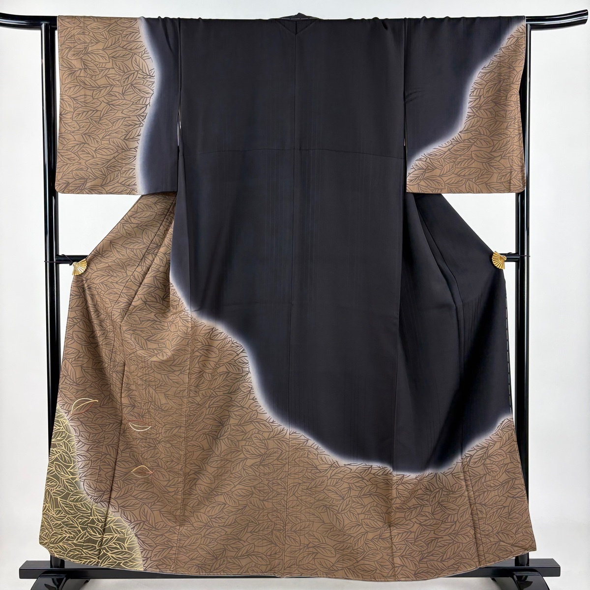 - 【美品】 訪問着 身丈159cm 裄丈65cm M 袷 葉 金糸 金彩 茶色 正絹 名品 【中古】
