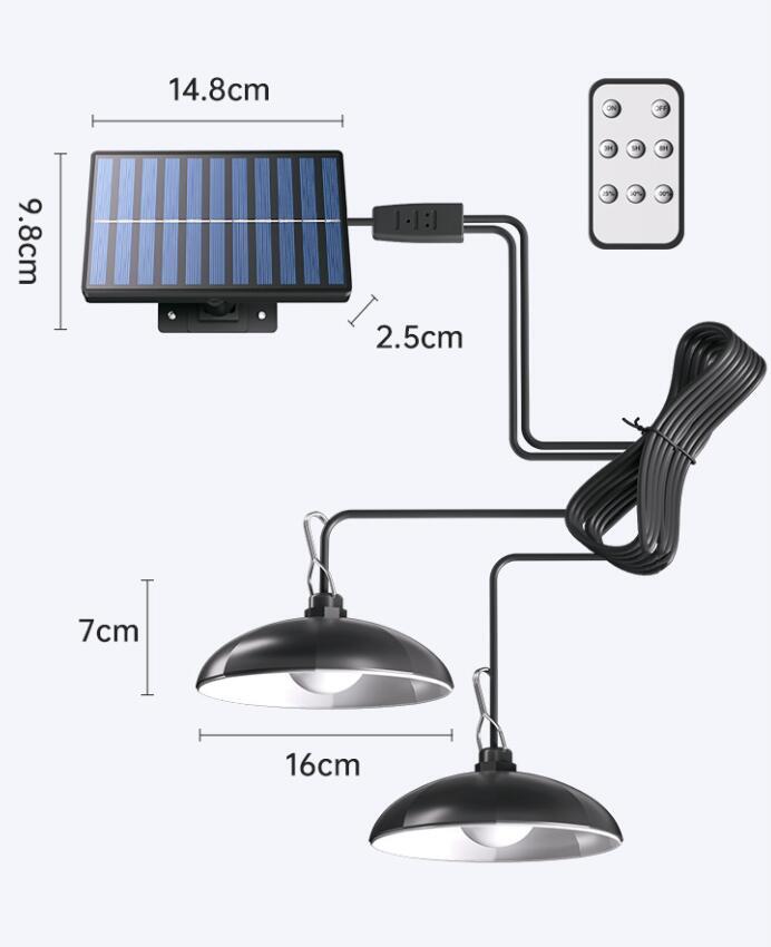 - 上質センサーライト 分離型 2灯ソーラーライト ペンダントライト 5M延長コード 人感センサー 防犯ライト 自動点灯 電気代不要 リモコン付き