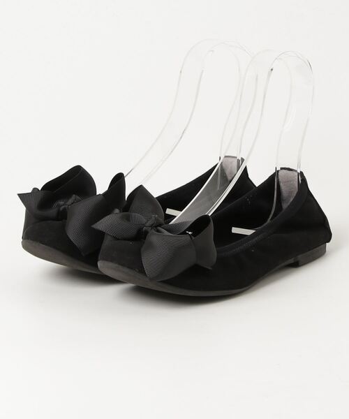 - 「BEAMS」 リボンバレエシューズ 24cm ブラック レディース