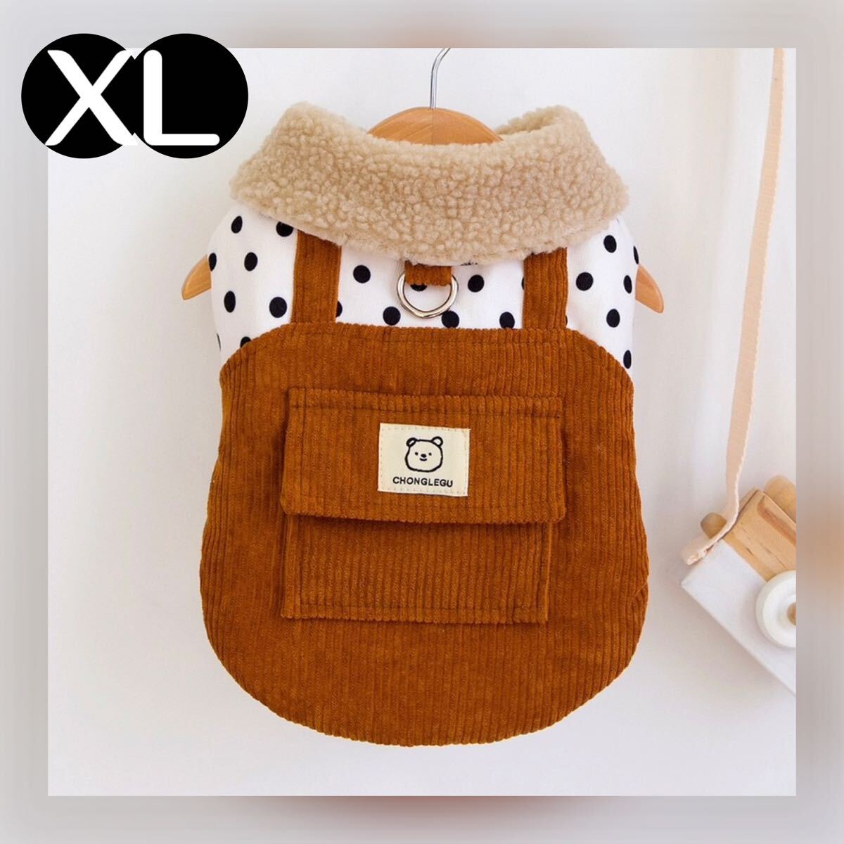 - XL リードフック付き 水玉 コーデュロイ ワンピース (茶色) 犬服 犬の服 小型犬 ペット服 ペット用品 ドッグウェア 裏起毛 スカート 冬