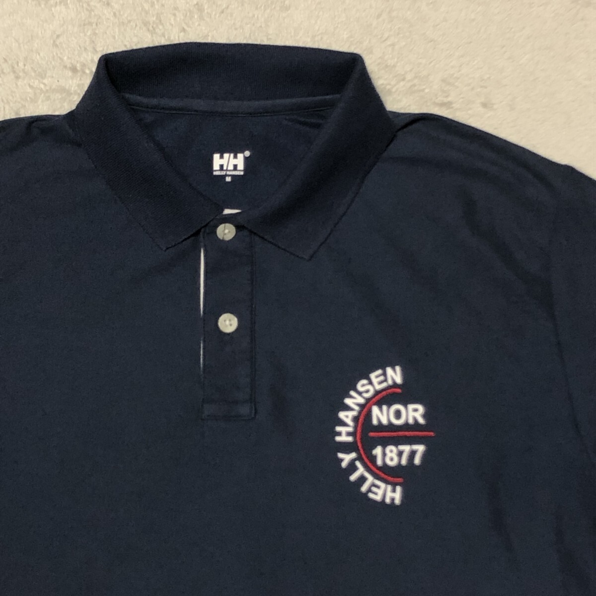 - ヘリーハンセン Helly Hansen 半袖ポロシャツ ロゴプリント ネイビー Mサイズ