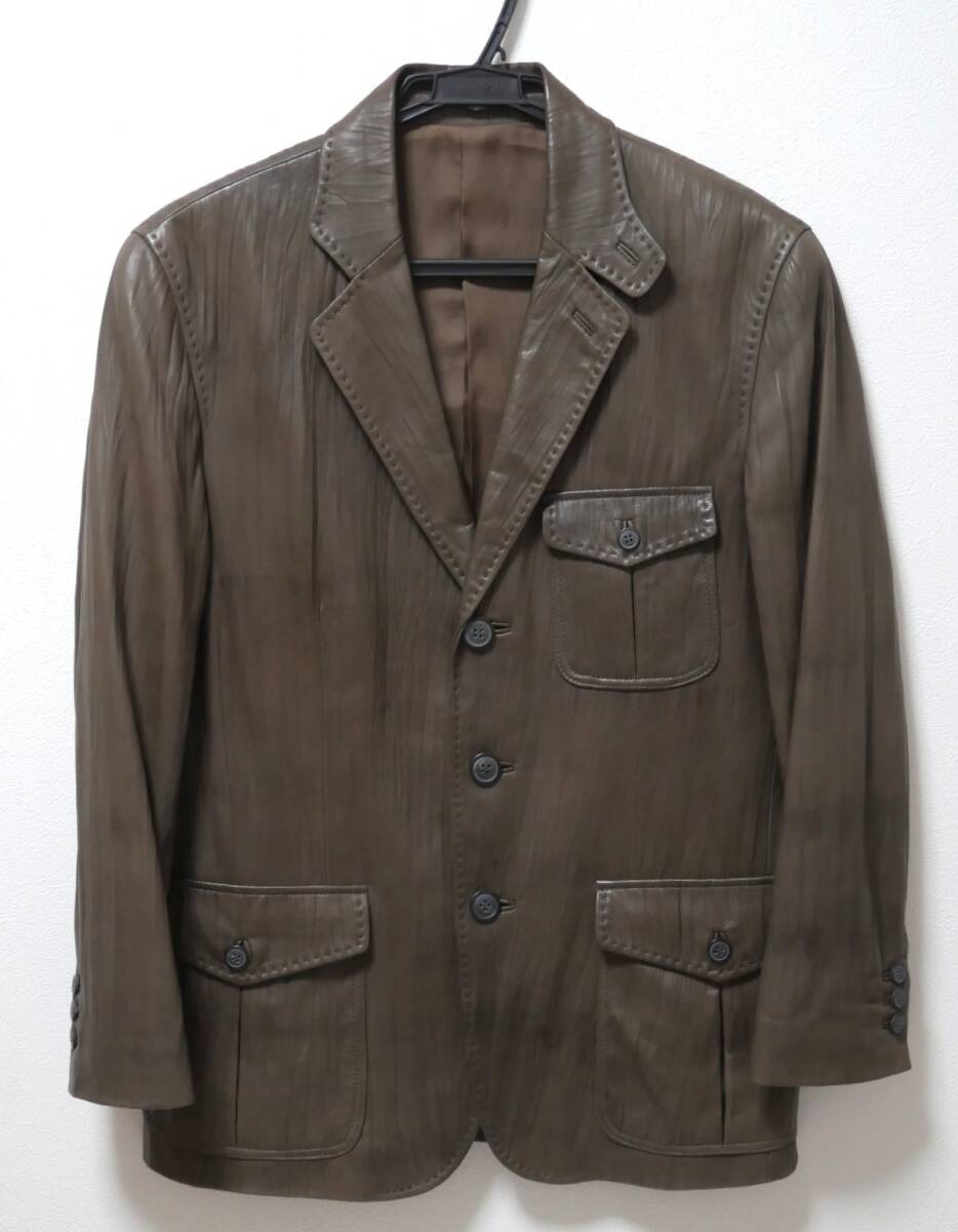 - G-STAGE 皺加工 ラムレザー テーラードジャケット 茶 S 羊革 ブレザー ジーステージ