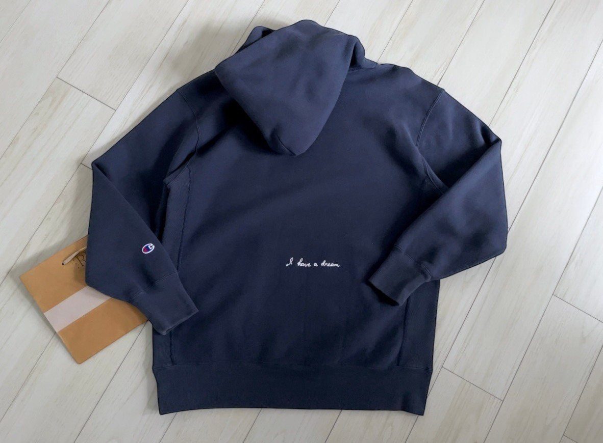 > 【LOOK掲載!!】ロンハーマン RHC × Champion チャンピオン I have a dream 刺繍 リバースウィーブ スウェットパーカー 稀少 XL ネイビー