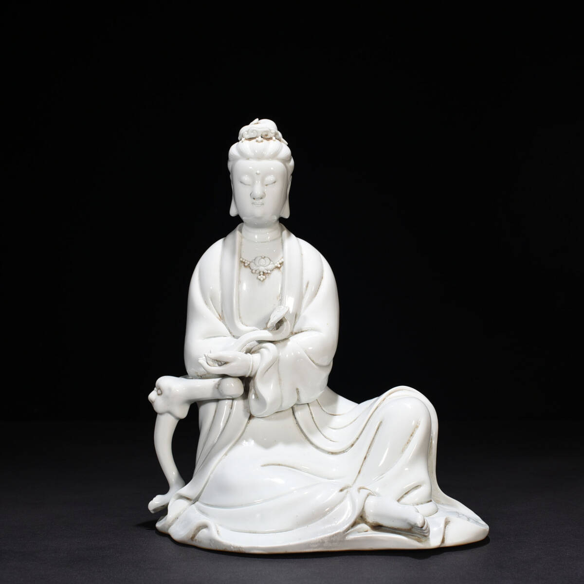 - ◆YA603◆古美術 徳化窯何朝宗款 白磁観音坐像 時代物 古玩 唐物 古陶磁器◆