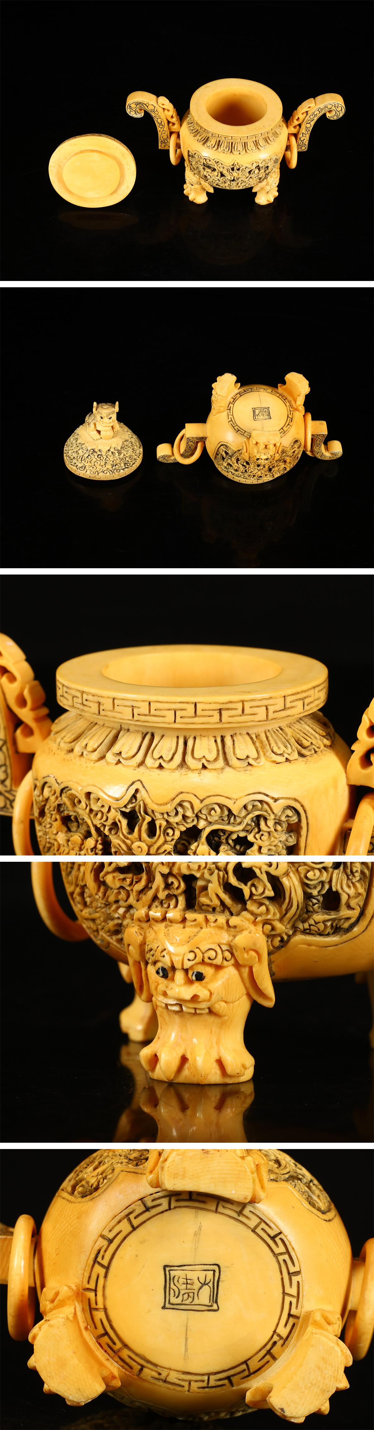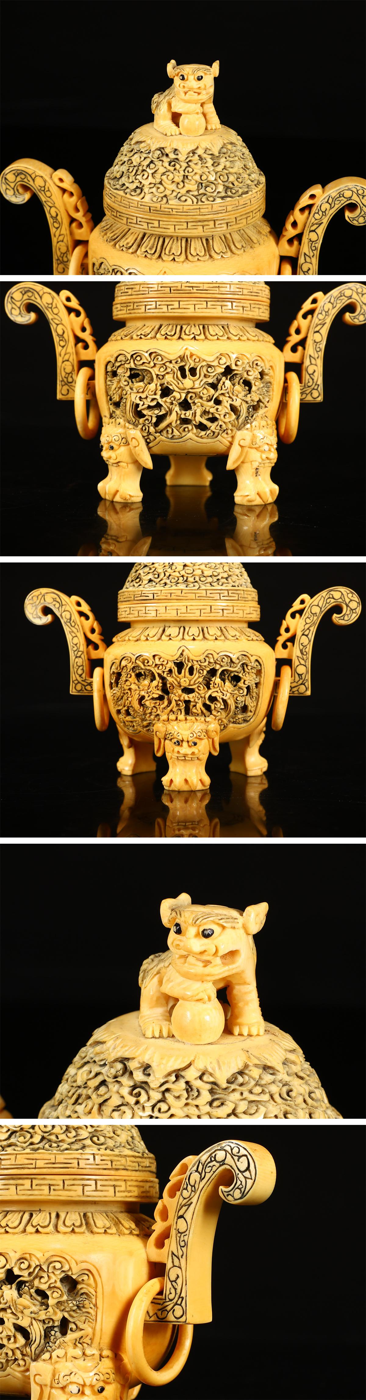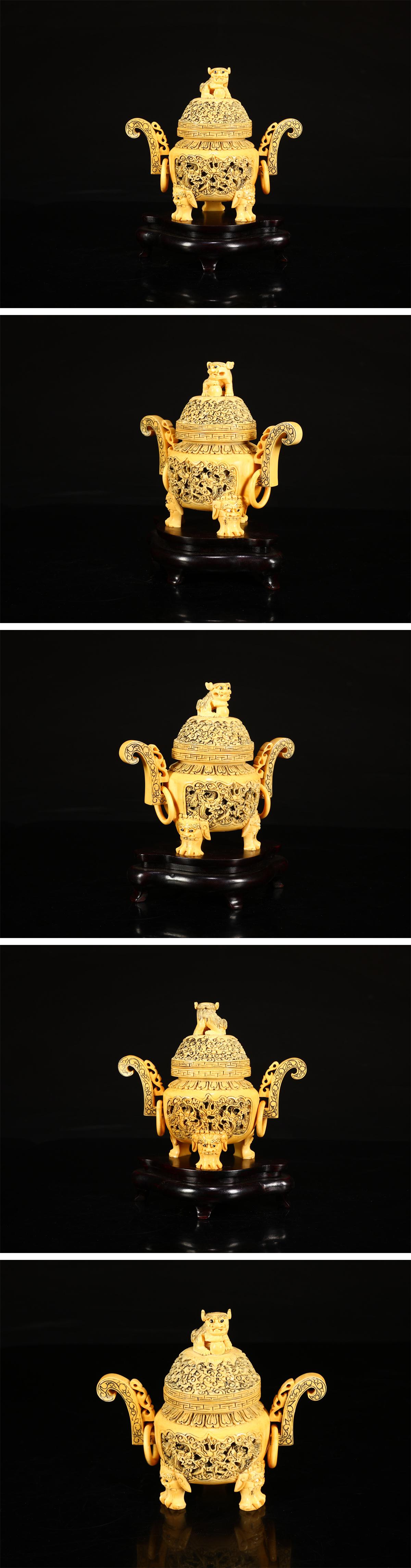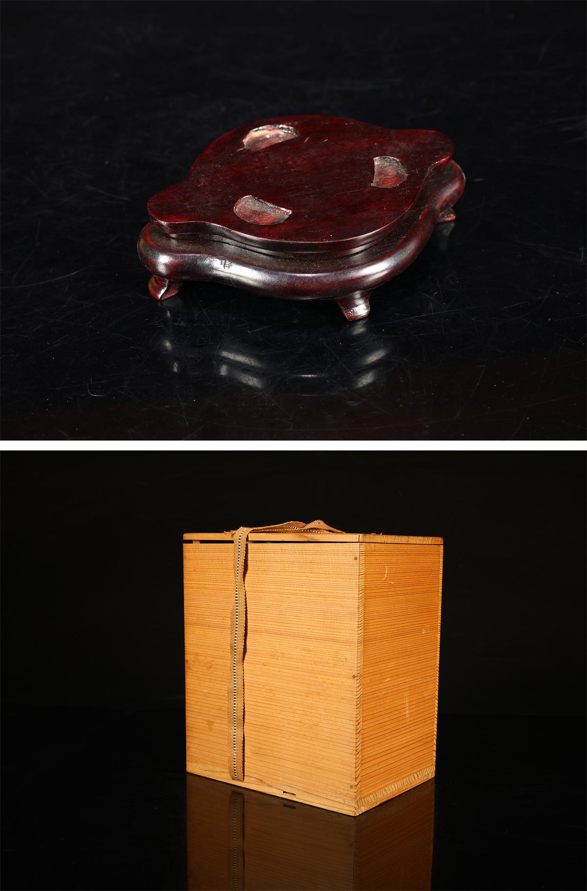 - 久1299 唐物 【清代】 東洋彫刻 龍紋 香炉 台付高17㎝ 幅15㎝ 箱付Ng