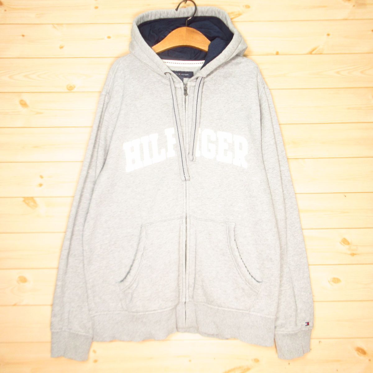 - ◎Tommy Hilfiger トミー ジップパーカー スウェット トレーナー 裏起毛 アーチロゴ ワッペン メンズ グレー Lサイズ◆AA4892